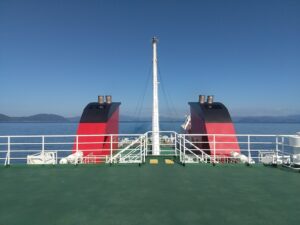 当日は八幡浜港から別府港までフェリーでの移動でしたフェリーの中でお弁当を食べたり、景色を楽しみながらゆったりと過ごしました😊